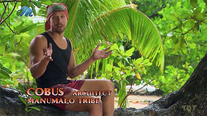 "Cobus is a lively, happy-go-lucky and proudly gay young man who lives on the light side of life, but admits that there’s sometimes a bit of sarcasm behind his million-dollar smile. It always comes from a good place, though. This social butterfly channels his boundless energy into running marathons or working really hard to get what he wants. His biggest fear going onto Survivor SA is that he will be part of a boring tribe, but as his circle of friends know, Cobus will quickly be able to change the mood for the better in any group. Having a down day will indeed be a new experience for this loving and caring architect. And who would not want someone who can construct a proper shelter for his or her tribe?"