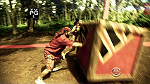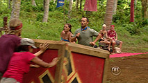 a pyramid-like shape, and everyone climbs to the top and cheers. The red tribe