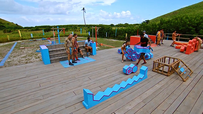 As seen in South Pacific. Contestants must build a house of cards with tiles, doing so on top of a tilting platform, while steadying the platform with their other hand. Lots of people drop their stacks repeatedly, but eventually, Cassidy wins. TC11 - Noelle voted out (5-2-1), 7 left. |