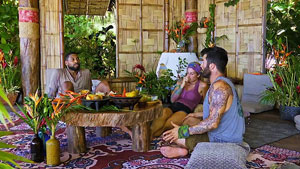 Josh, Carson, and Jaime arrive at the dilemma island, are directed to take a hike as in Ep1, but when they reach the summit and take separate paths, this time each person receives a new buff, and an idol, active until "all players are living at one beach." Josh is sent to Tika, Jaime to Soka, and Carson to Ratu.