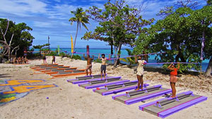 As almost seen in Samoa. Two teams: Orange (Carson in ball, Lauren, Yam Yam) and purple (Jaime in ball, Carolyn, Heidi). Two blindfolded people must roll a (sighted) person in a large ball through an obstacle course,to a table maze. The person in the ball directs them along the way. Winning team gets a trip to the Sanctuary. Results: orange takes a huge lead, as purple goes off course several times, wins easily.