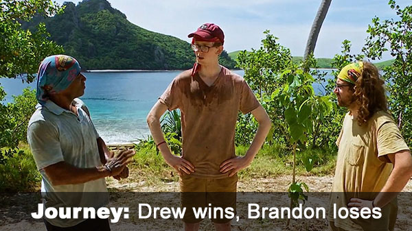 - Ep.2 journey: Bruce, Drew, Brandon attend. Drew wins Safety Without Power (and tells all of Reba). Brandon loses his vote.