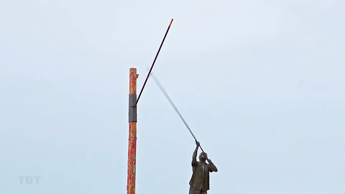 We’ve seen this challenge before. I wonder if anyone will remember the trick to getting the flint off the pole - namely sticking the pole through the loop and dragging it?