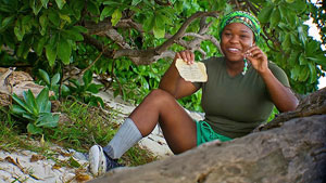 Star, Cedrek sit out. Contestants start on dock, swim to shore while pulling a boat. Once to shore, they lift a heavy chrst out of it, haul it to a platform. There they must unbraid three ropes attached to sandbags to release a key, the key unlocks the chest, releasing a bag of balls. They must take the balls, dig under a log, then each person must roll a ball through a table maze and place it at the end. Results: Lagi first to maze, then Vula and Civa, but nobody has any balls placed once all are on the maze. Vula lands four balls to Civa's one (Lagi zero), so Vula wins! Eva places the last ball for Lagi, Lagi second. Civa loses again.