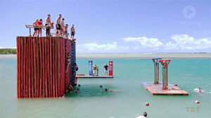 Steve W, Lydia, Shane) dive off one at a time and