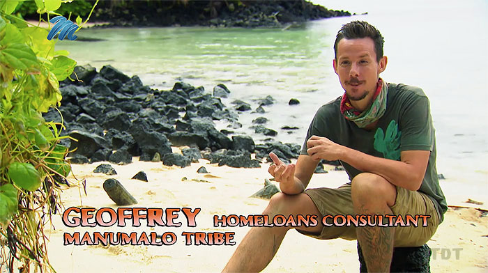 "Geoffrey is married with children and works as a home loans consultant. And that’s where normality ends in Geoffrey’s world. In his own words, he’s a quirky goofball who has the tendency to gossip like a school girl. To that he adds that he is a shameless manipulator who has been called a “he-bitch” more than once. Yet, this tenacious lover of whatever causes drama knows just what to say to butter people up and make them love him. Yes, he is sneaky and conniving and doesn’t really care what people think about him – as long as he does what is needed to win Survivor. Not so long ago risk-taker Geoffrey won a national body transformation challenge, losing 30kgs in just three months. Then he ran the Comrades marathon after training for only six months. Anything is possible when you’re Geoffrey from Colenso in KZN."